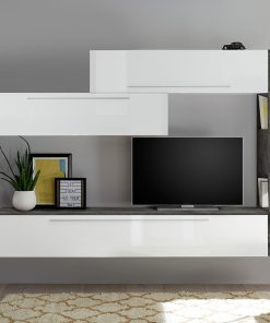 Gli elementi sono prodotti in melaminico e offrono ampi vani interni, inoltre, è possibile scegliere la combinazione di colori, tra bianco laccato lucido e noce stelvio. noce dark, cemento o ossido.
