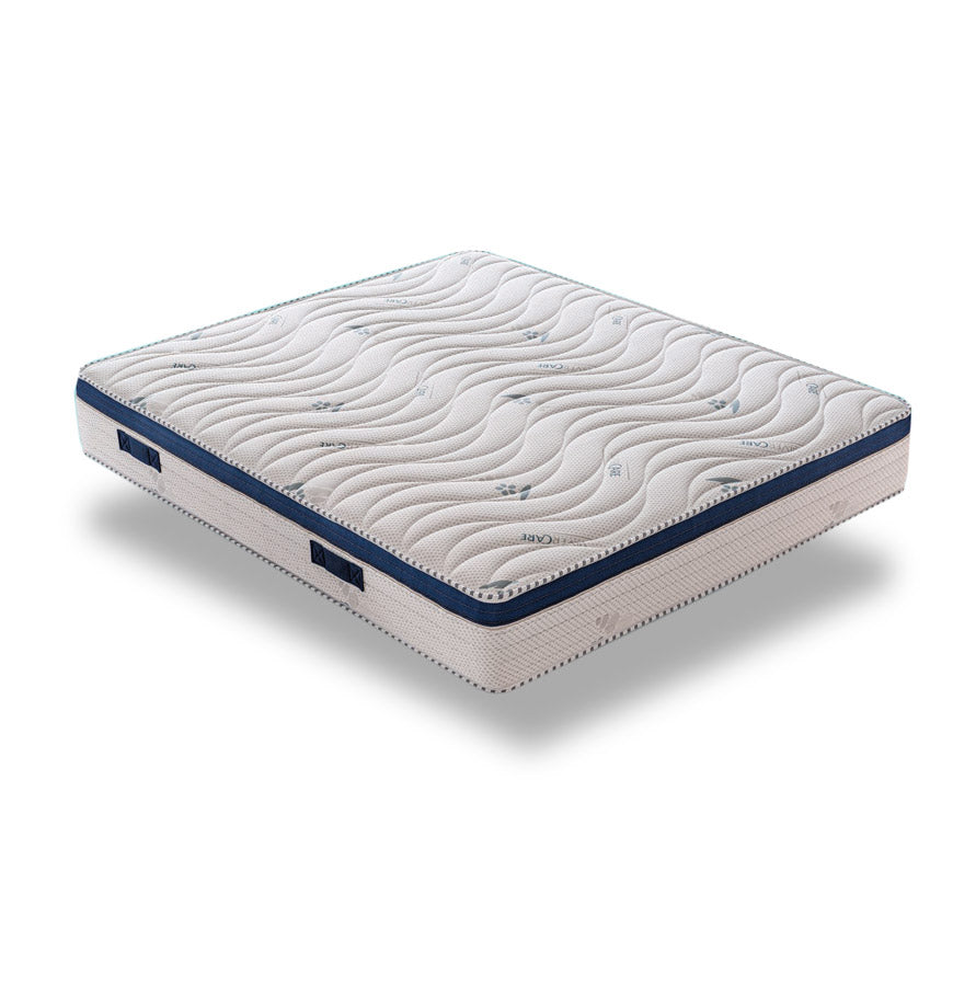 Materasso matrimoniale che utilizza il sistema di molleggio indipendente, accompagnato da ulteriori ed importanti elementi che migliorano il comfort e il benessere, ossia, è dotato di strato in Memory Foam e un rivestimento in tessuto Silver Care.