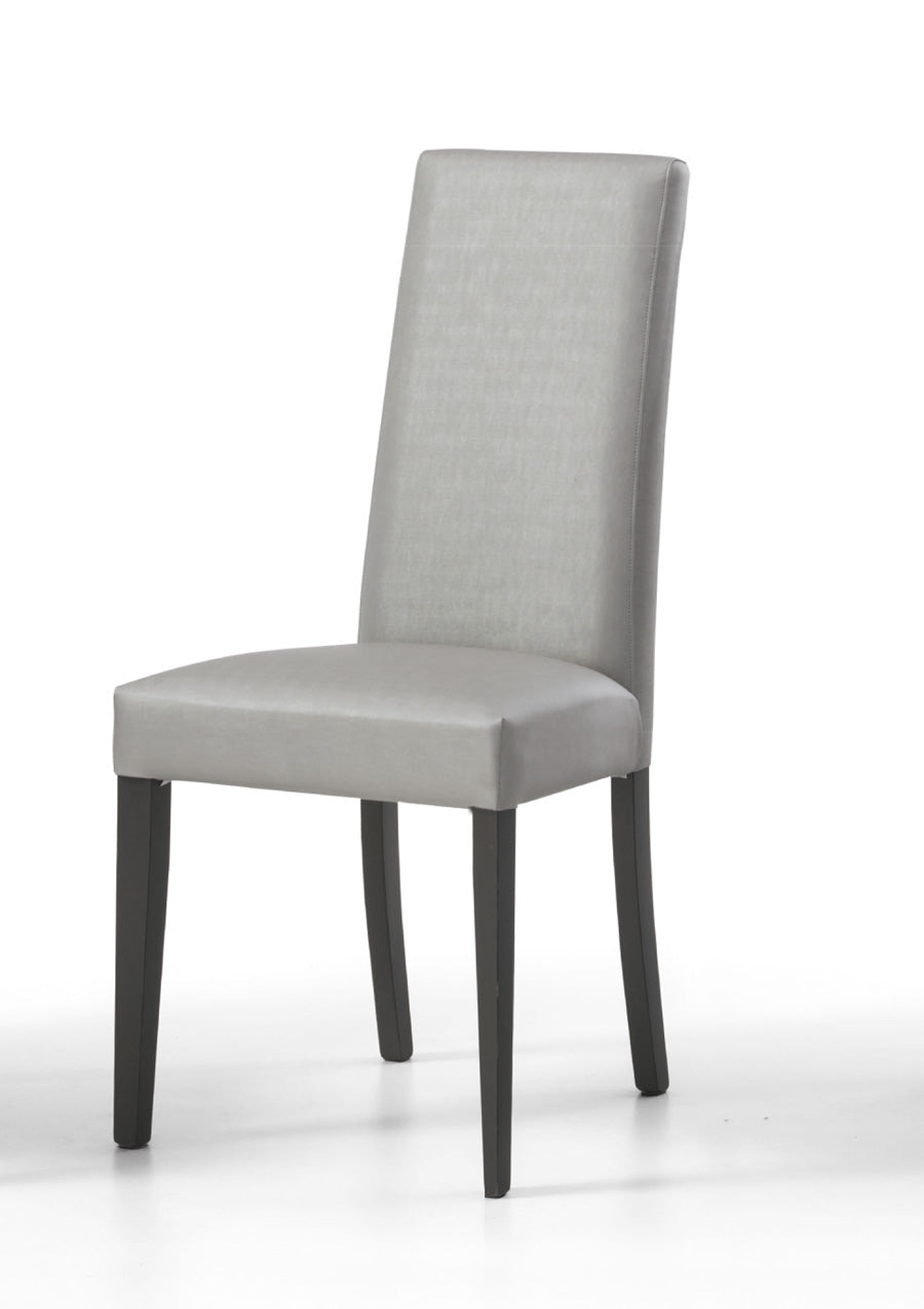 Sedia moderna Matilde, altamente comoda grazie allo schienale alto e all‘imbottitura. Formata da robusta struttura in legno Matilde si caratterizza per il bellissimo rivestimento in ecopelle lucido satinato, disponibile anche la versione in eco nambu.