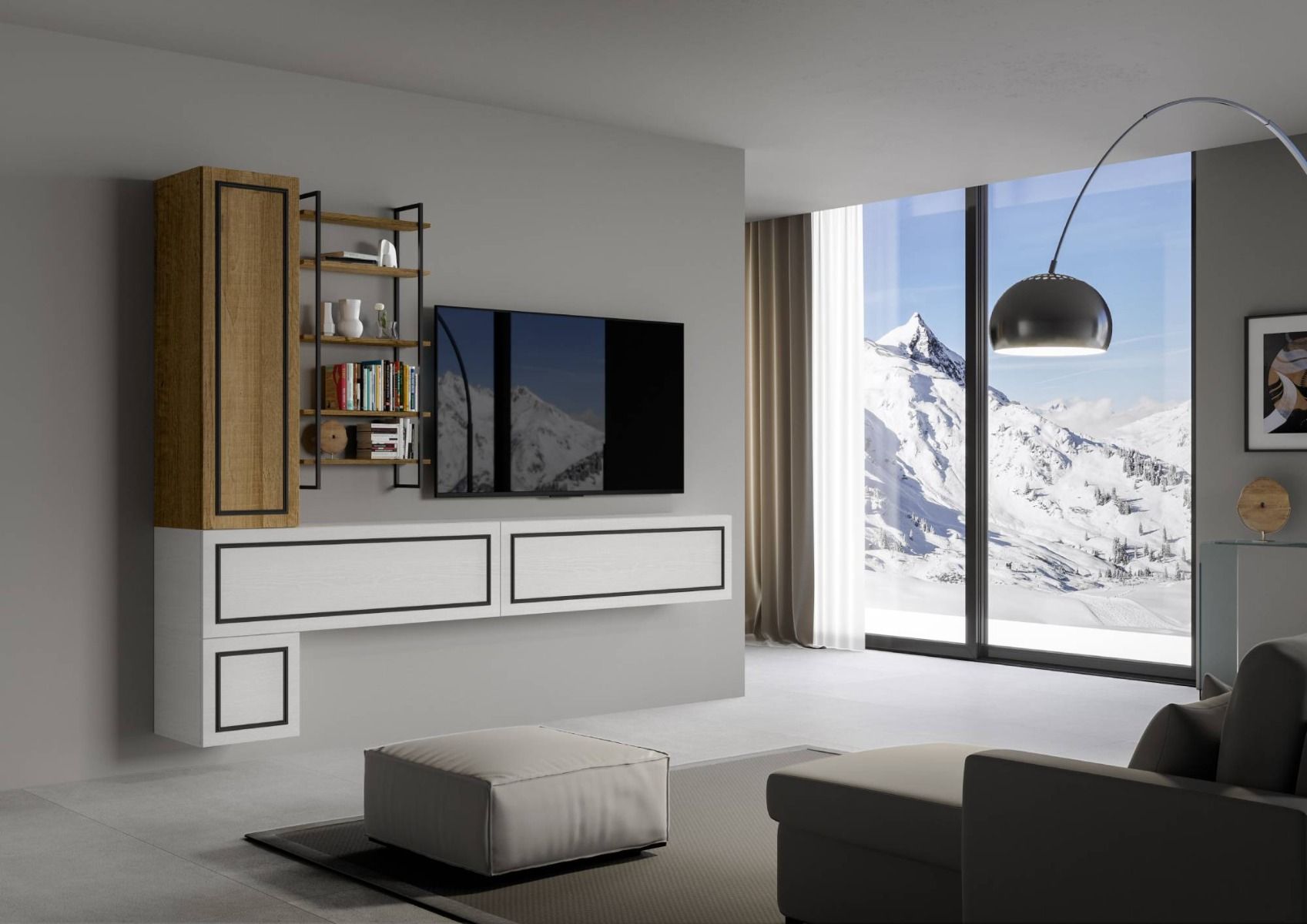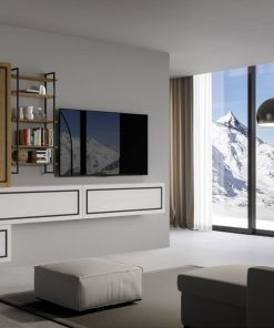 Parete moderna Melita Evo, una soluzione d’arredo sobria e funzionale per arredare il tuo living scegliendo un’estetica minimale e contemporanea. Composta da 2 pensili orizzontali, 1 pensile verticale, un cubo e libreria opzionale, la nostra parete design si contraddistingue per le cornici che arricchiscono i frontali e dettano un’assoluta novità per quanto riguarda il mercato delle pareti moderne.