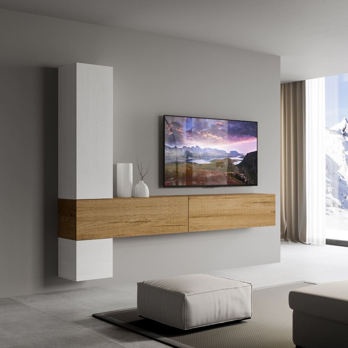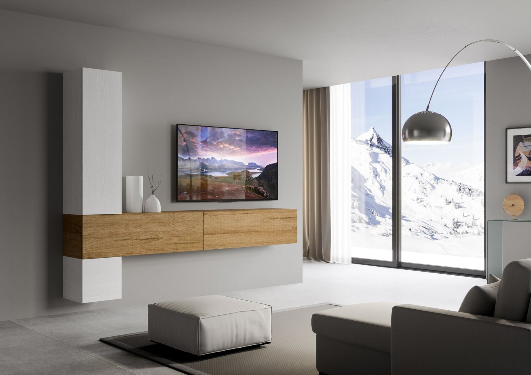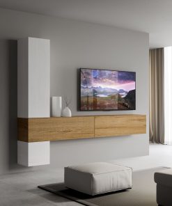 Melita – Parete moderna composizione pensili design in legno bianco e quercia