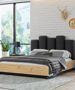 Affascinante camera matrimoniale completa Mendola, un’idea all’avanguardia dedicata a chi vuole distinguersi. Infatti, il particolarissimo letto contenitore con la sua stupenda testiera sagomata, detta le caratteristiche di uno stile originale, dotata di imbottitura e rivestita in similpelle colore nero. Mendola si compone anche di armadio 2 ante, cassettiera e 2 comodini realizzati in legno finitura naturale contrastata da parti in nero opaco, tutti elementi che realizzano uno stile industriale moderno e innovativo.