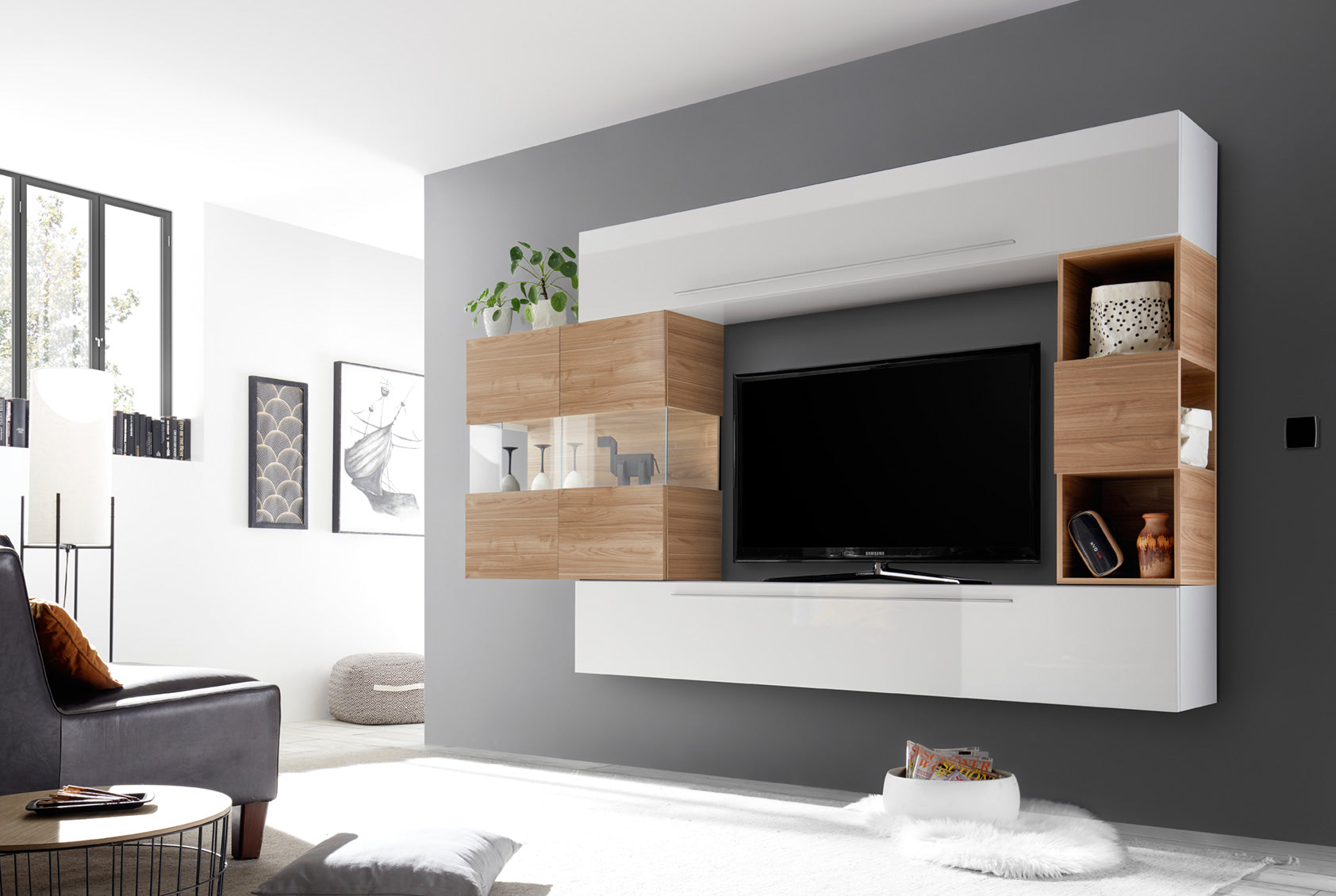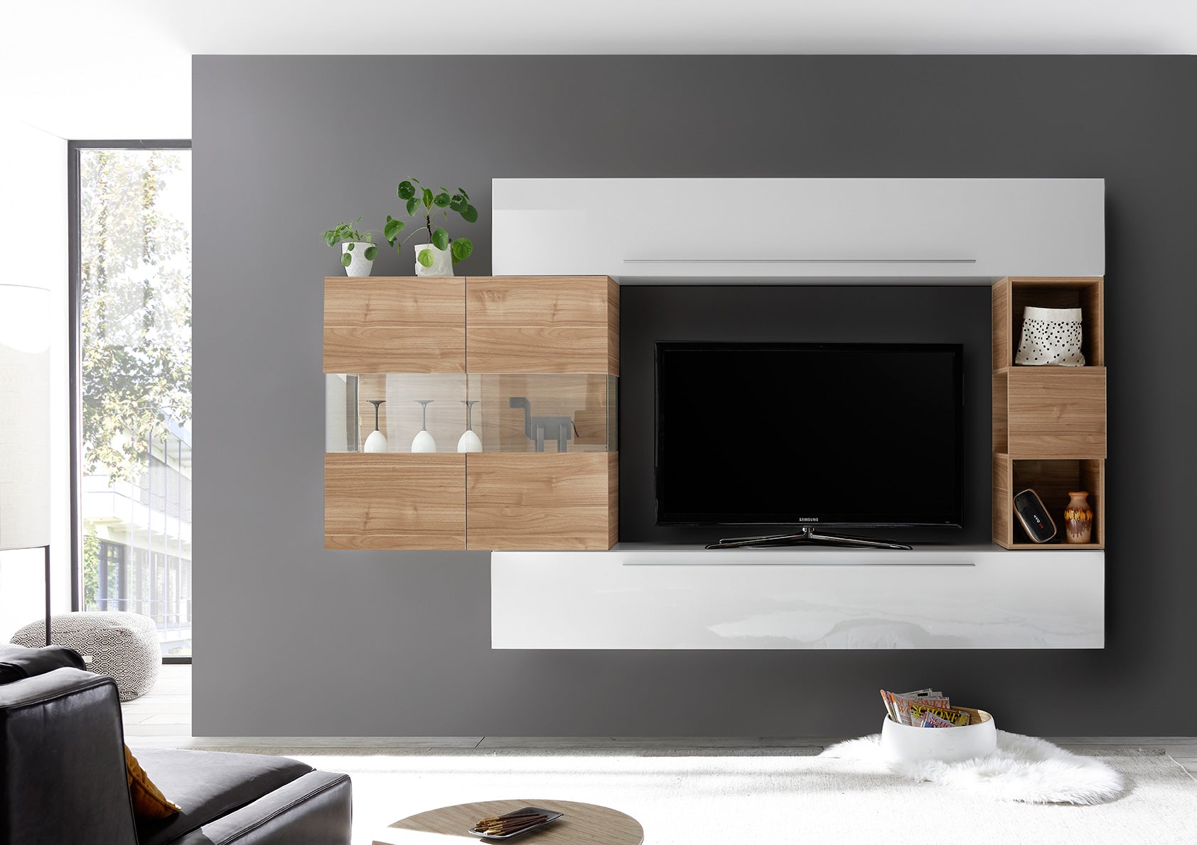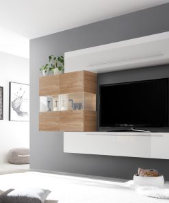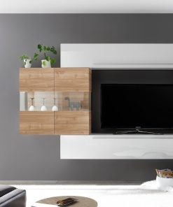 Contemporanea e dal design avvincente, questa parete da salotto si rivela anche pratica, offrendo spazio nei suoi ampi vani, e grazie alla vetrina, potrete mettere in evidenza gli oggetti che desiderate.