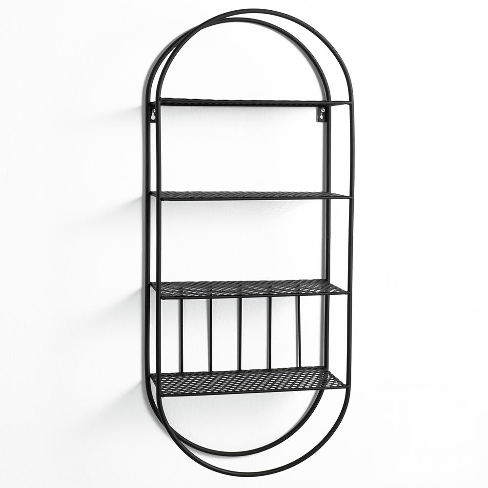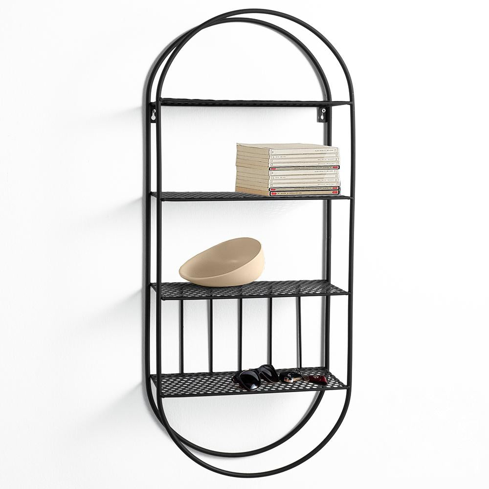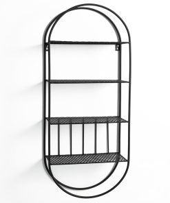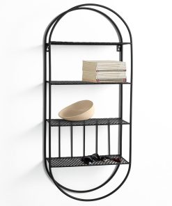 Mensola da parete industrial ovale in metallo nero opaco con ripiani cm 33x13x78h