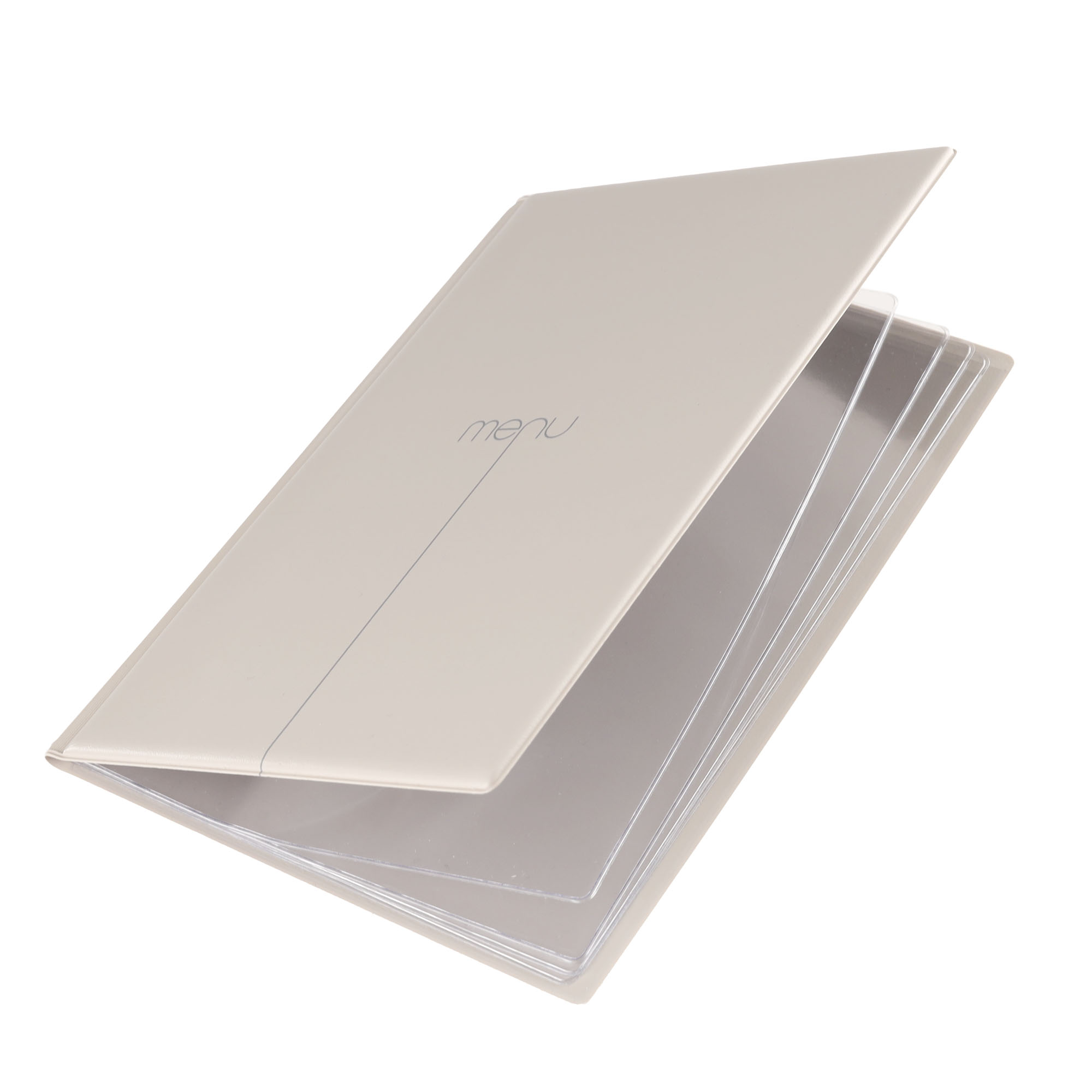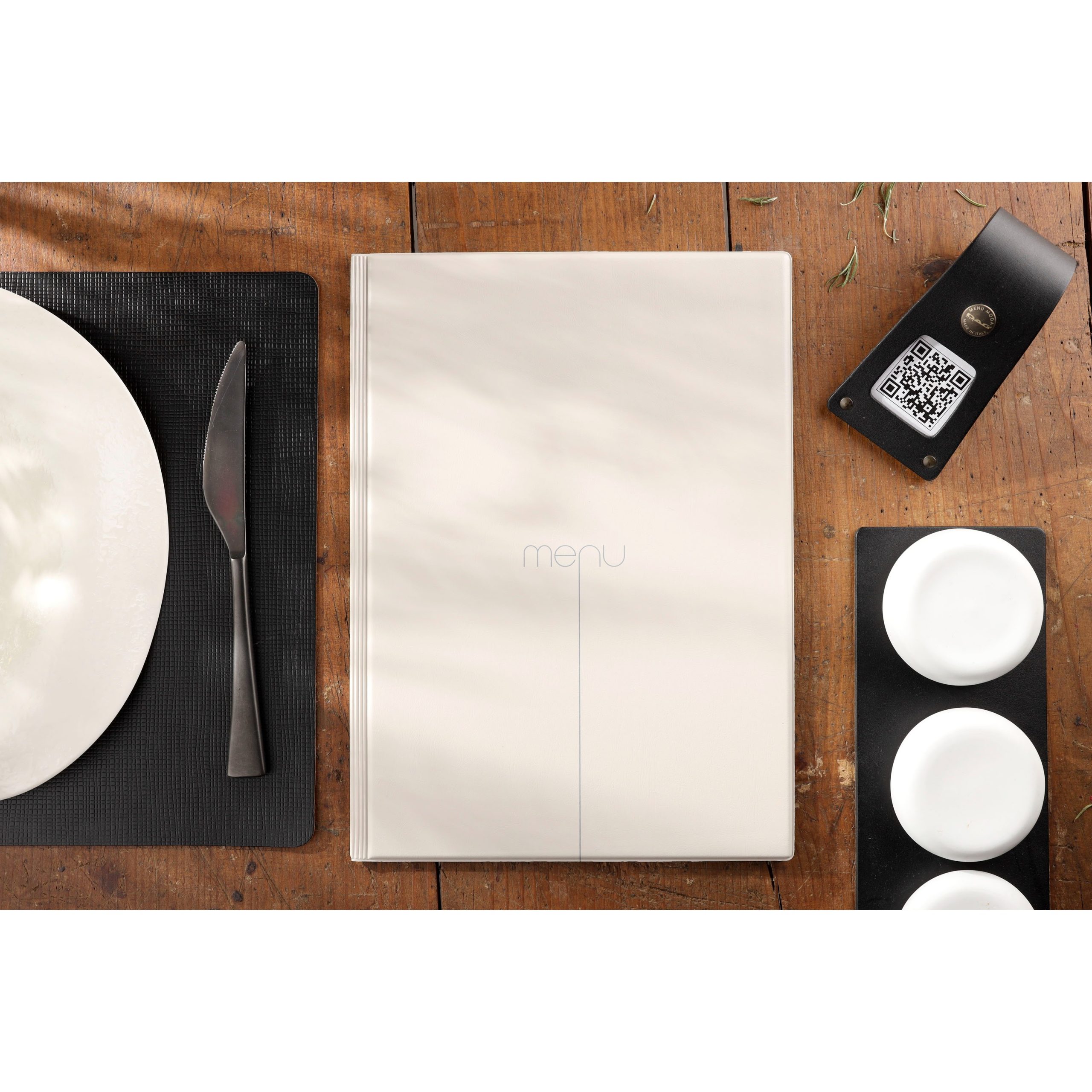 Ogni menu viene fornito con una busta all’interno, che permette di inserire due fogli del formato corrispondente, per un totale di 4 facciate.