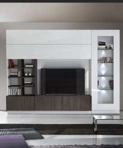 Fantastica parete attrezzata modello Mercury, un modello compatto che occupa l’intera parete per ottimizzare al massimo gli spazi, creando un’unica struttura ricca di vani interni ed esterni. Mercury comprende una vetrina, pensili con vani interni e base TV con ante a ribalta e cassetto, il tutto arricchito da una graziosa libreria.