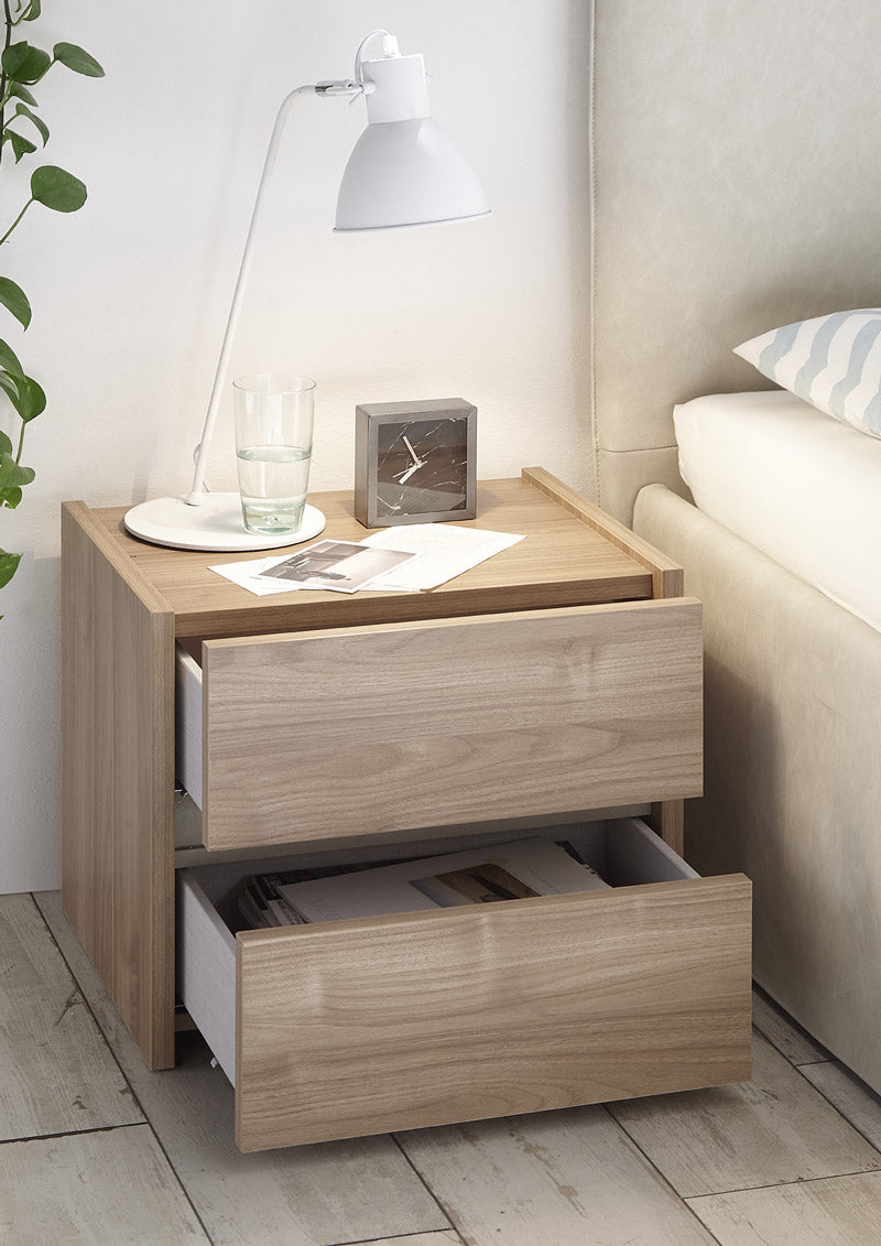 Comodino camera matrimoniale 2 cassetti in legno bicolore
