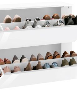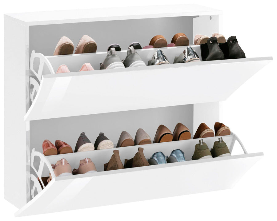 Scarpiera con 2 ante a ribalta design ad arco in legno bianco lucido