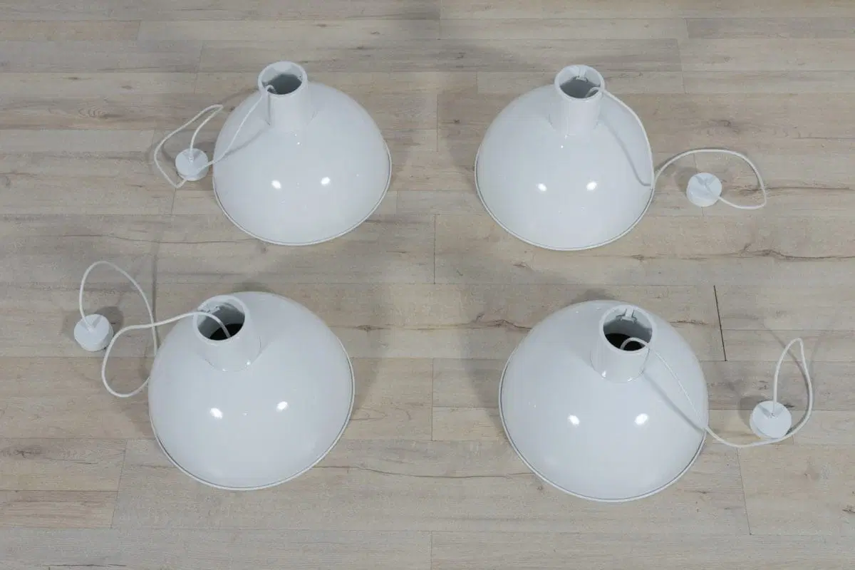Hanging lamp Bunker designed by Jo Hammerborg for the Danish manufacture Fog & Mørup in Denmark in the 70’s. The lamp has been completely renovated. The lamps have been cleaned and repainted. Perfect lamp condition. The cabling has been replaced with new ones. The lamp is fully operational.