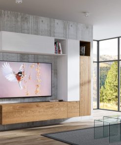Mirak – Soggiorno a parete pensili in legno bianco e quercia