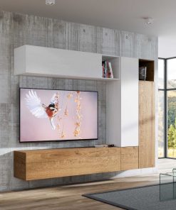 Mirak – Soggiorno a parete pensili in legno bianco e quercia