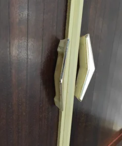 Il mobile si apre scorrendo i due sportelli verso destra e sinistra. Ruotando la parte interna fuori esce un contenitore di bottiglie con uno specchio.