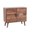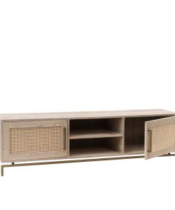 Mobile porta tv in legno massello naturale con vani e ante con paglia