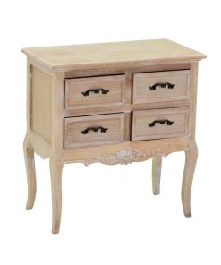 Mobile cassettiera 4 cassetti, aggraziato nel design, attraverso il legno lavorato con intagli e sagomature, che producono un aspetto classico ed elegante. Tutto questo contrastato dalla finitura naturale del legno che regala una nota country, affascinante ed unica.