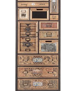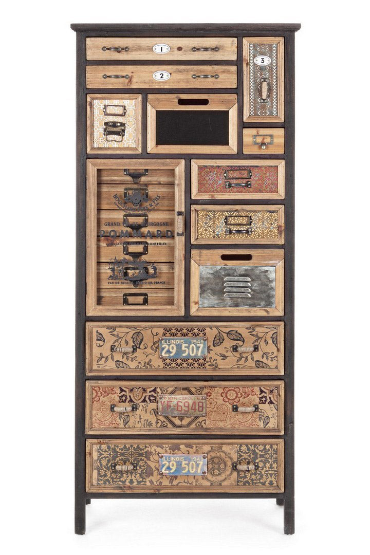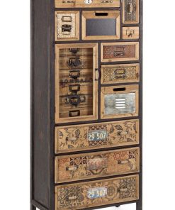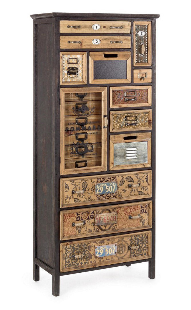 Mobile cassettiera con anta vetrata e 12 cassetti in legno stile industriale cm 66x33x152h