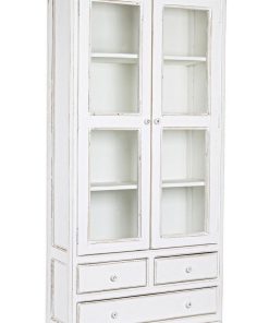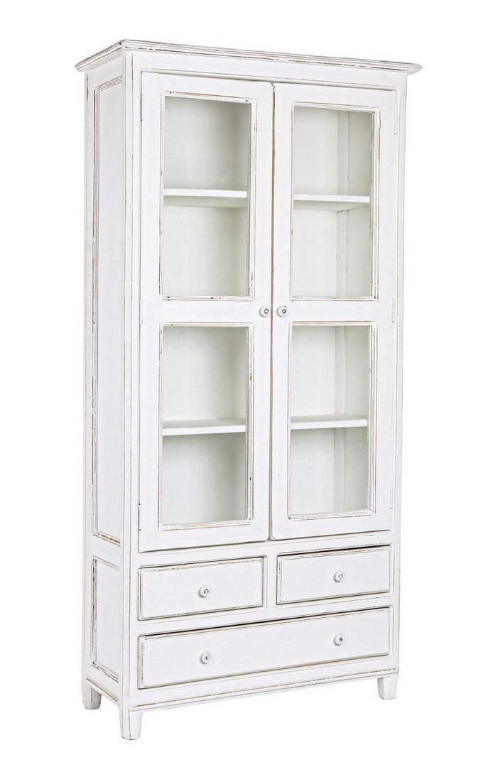 Mobile con vetrina da soggiorno in legno massello bianco classico cm 90x38x185h