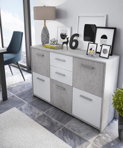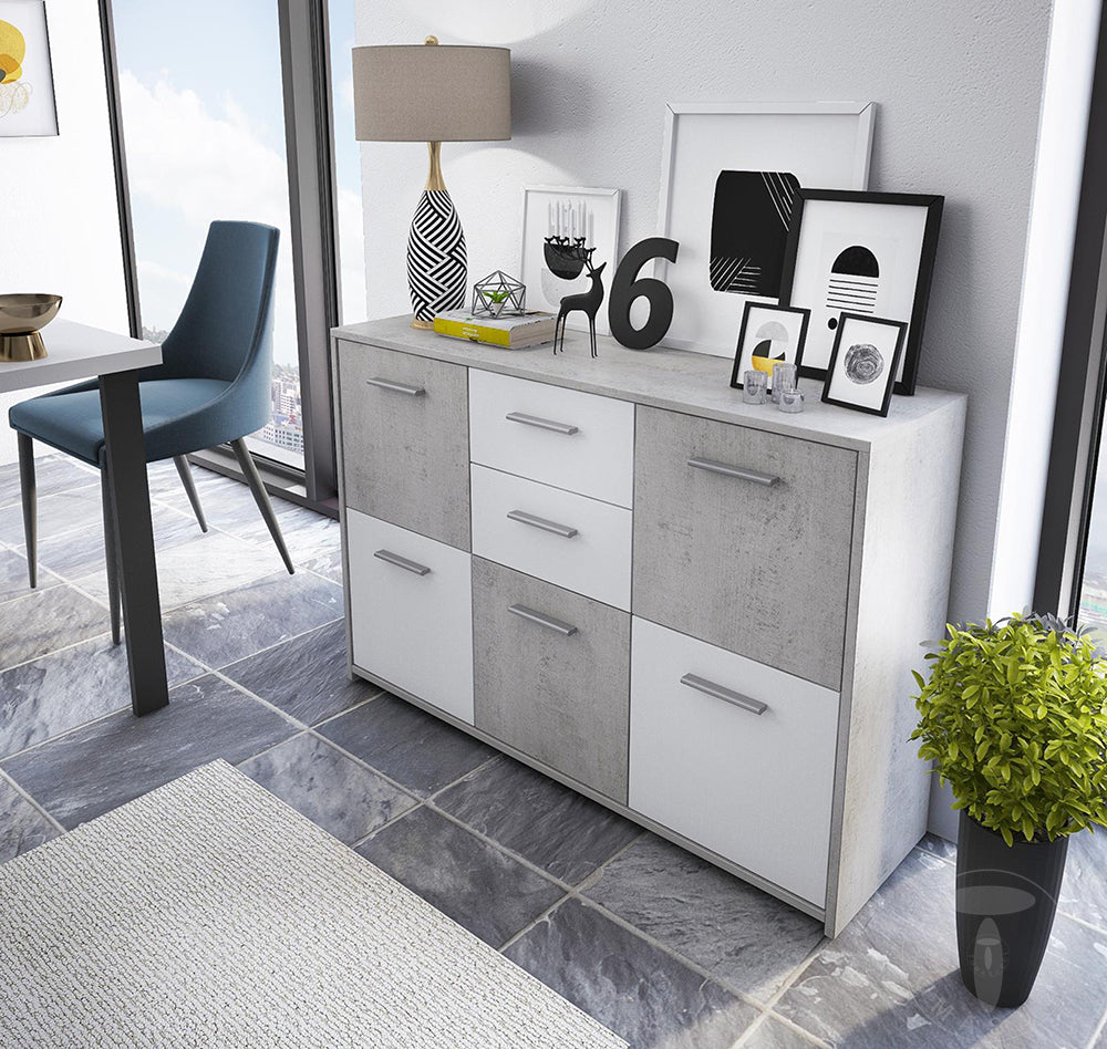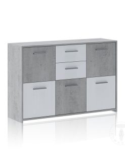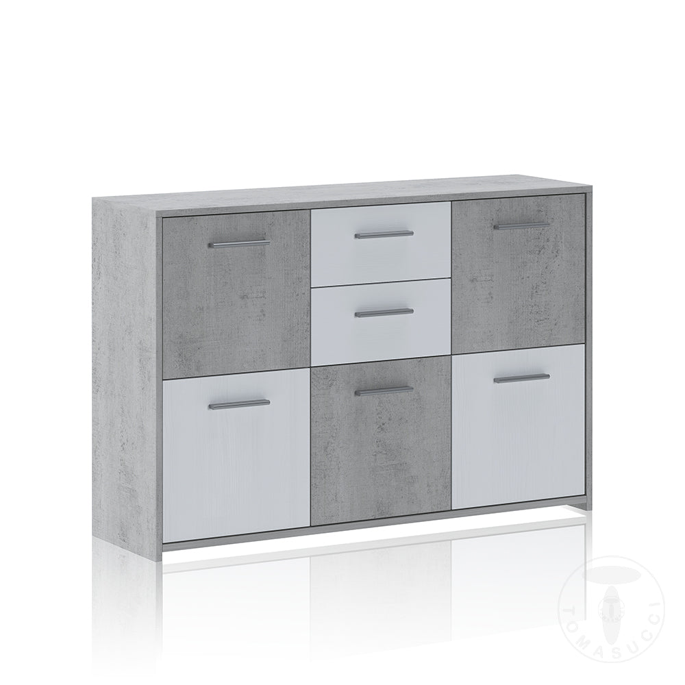 Mobile da soggiorno o salotto pratico, funzionale con un’estetica gradevole e un’accostamento di finiture equilibrato. Infatti, la nostra madia moderna prodotta in legno, si compone di 5 ante e 2 cassetti in cui si alternano larice bianco a poro aperto e cemento, un abbinamento attuale e richiestissimo.