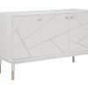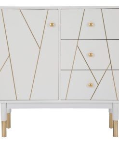 Mobiletto con anta e cassetti stile moderno in legno bianco con inserti in metallo dorato cm 80x40x82h