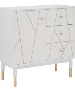 Mobiletto con anta e cassetti stile moderno in legno bianco con inserti in metallo dorato cm 80x40x82h