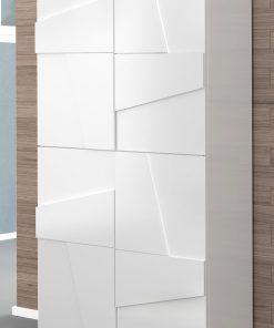 Eccellente scarpiera moderna, realizzata in legno, con 2 ante. La struttura è disponibile in 3 diversi colori: ossido, cemento o bianco lucido. All’intero, vi sono 8 ripiani che rappresentano il giusto spazio per riporre in ordine tutte le vostre calzature. Un design originale ed elegante, grazie alle figure geometriche poste sui frontali delle ante, per un look gioviale e unico.