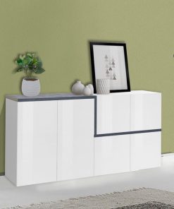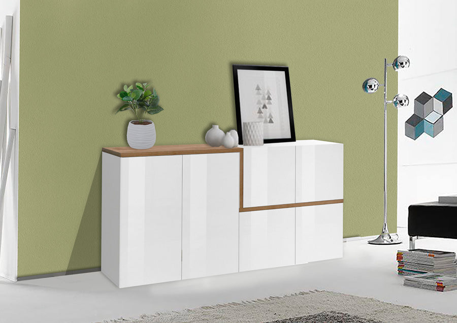 Credenza in legno con 6 ante, disponibile nella colorazione bianco lucido e pero o ossido. In stile moderno, dona alla stanza eleganza e classe, un prodotto Made in Italy, realizzato con prodotti di qualità.