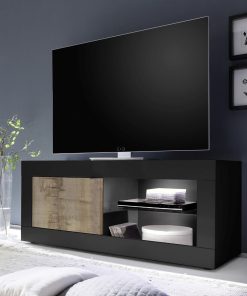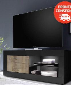 Piccolo e compatto mobile porta tv realizzato in legno modello Narello, interessante per coloro che cercano un arredamento non convenzionale. Infatti, la particolarità di questo mobile porta tv spicca nelle finiture del legno, ossia nero della struttura e pero dell’anta, abbinamento contrastante ed espressione di stile trendy.