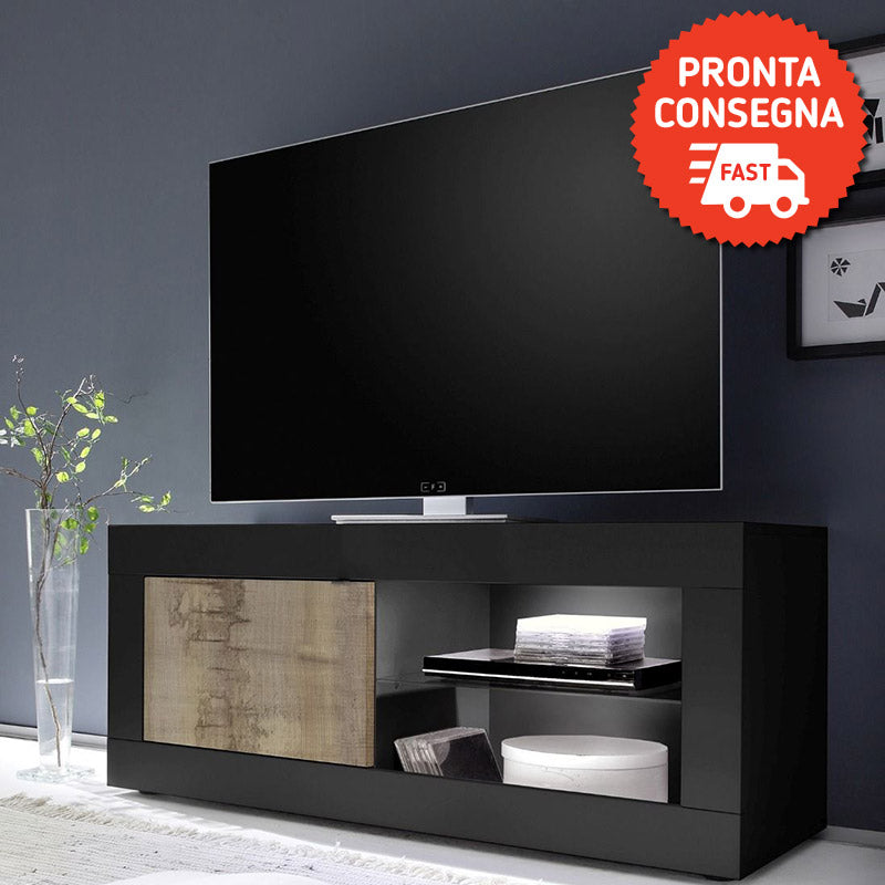 Definito da linee rette, il mobile porta tv mette a disposizione un vano chiuso da anta e mensola in vetro a cui potrai aggiungere una luce a led.
