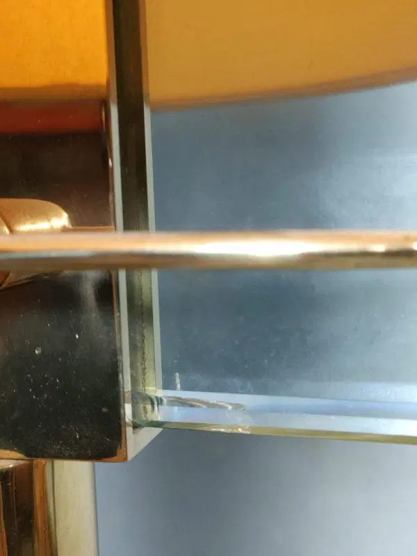 Lieve filatura di uno dei due vetri come da foto. Lievi segni d’uso del tempo dell’ ottone come da foto.