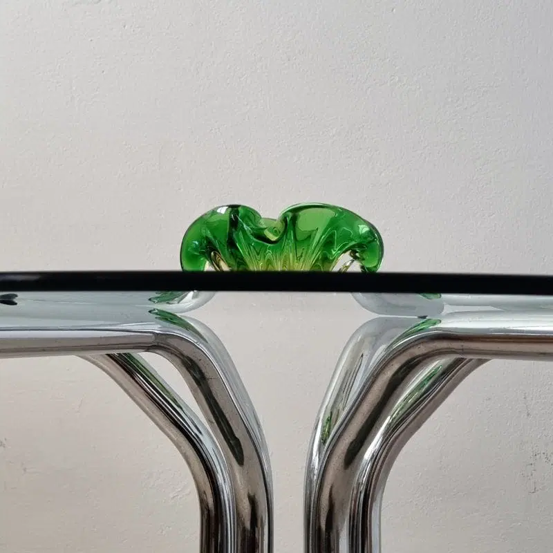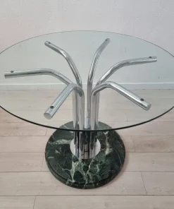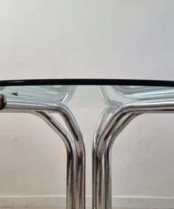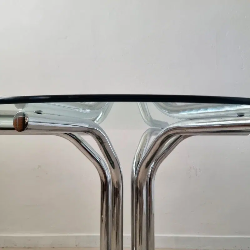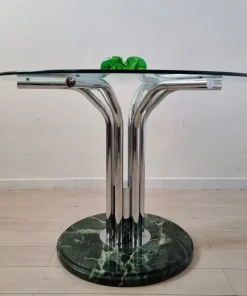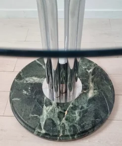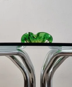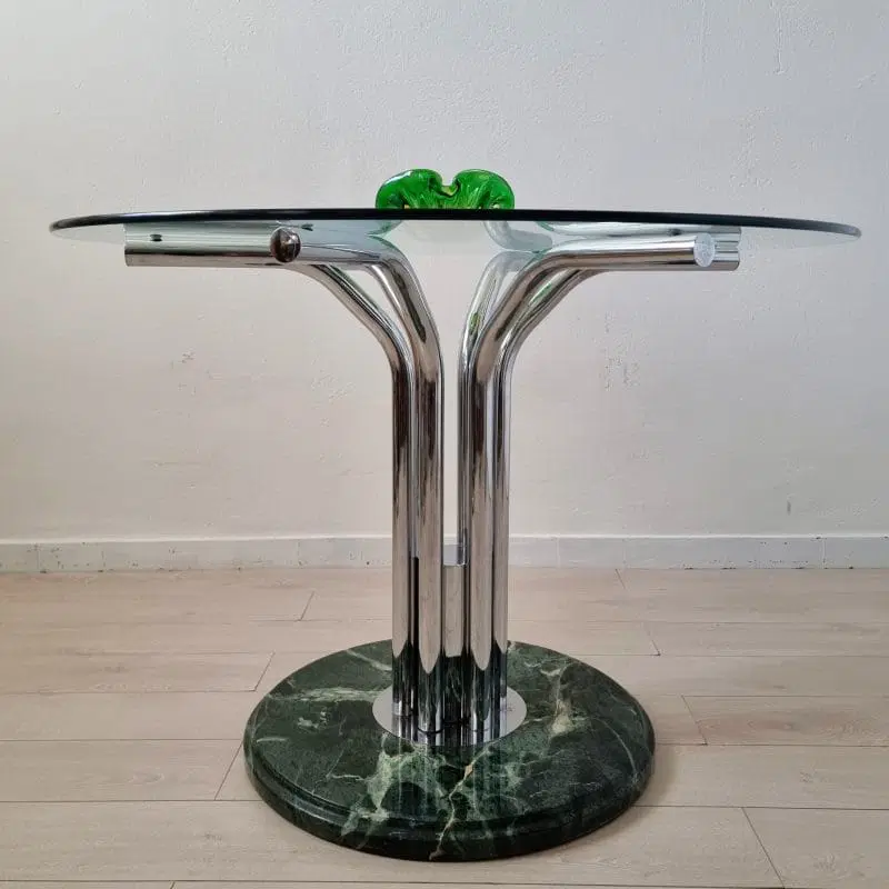 Il Top in vetro è integro misura cm.105 l’acciaio l’altro elemento di forte impatto tuttavia risulta elegante e slanciato.