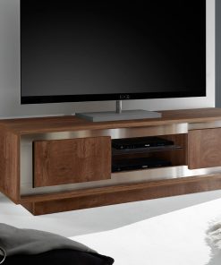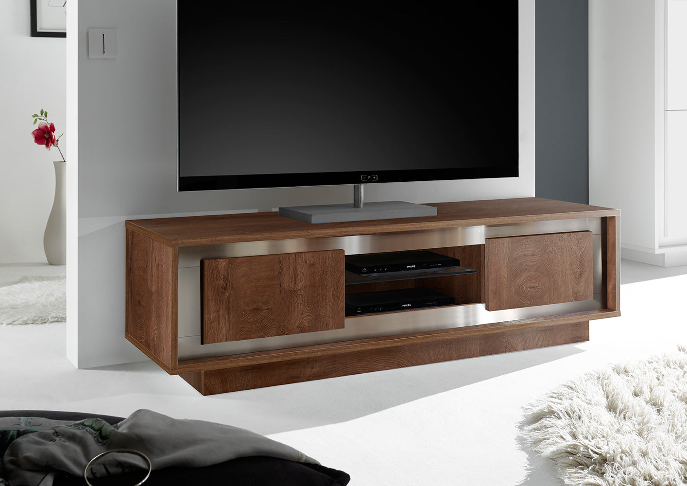 Nereide – Mobile basso porta tv con ante rovere cognac e fasce in metallo cm 156x50x45h