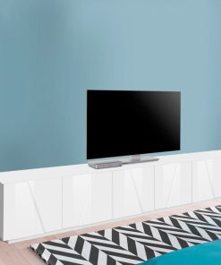 Incantevole mobile porta tv, realizzato in legno, design moderno. La struttura è dotata di 6 ante, disponibile in 3 colori differenti: bianco lucido, ossido o cemento. Il mobile è stato progettato e costruito dai nostri bravi artigiani, delineando un complemento unico dal design al 100% Made in Italy. Perfetto da collocare in salotto o soggiorno, il mobile è ideale per chi ama arredare la propria casa con stile e unicità.