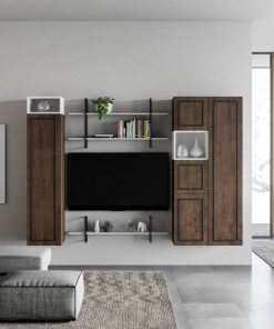 Parete sospesa moderna Nevis Evo, un’idea esteticamente intrigante che impiega solo pensili verticali e vani, creando una composizione singolare a cui potrai aggiungere una mensola e una libreria realizzate in ferro. I pensili della nostra parete design sono realizzati in legno colore noce con vani bianco frassino, arricchiti da una cornice colore antracite sui frontali, caratteristica che accresce l’originalità di questo modello. Nevis Evo è il risultato della progettazione e produzione Made in Italy, garanzia di qualità e durevolezza.