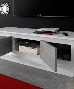 Mobile basso porta tv perfetto per il tuo soggiorno dallo stile sobrio e moderno. Il mobile Odette dispone del necessario per ospitare il televisore con i vari dispositivi collegabili, strutturato con vano centrale e due ante laterali. Il design lineare e pulito lascia spazio visivo alle finiture, infatti, la struttura in melaminico bianco opaco, è contrastata dalla presenza di ante disponibili in due colori: cemento, finitura pero, rovere cognac, un abbinamento quest’ultimo, ancora più acceso. E’ prevista anche, una versione completamente bianco opaco, semplice e versatile.