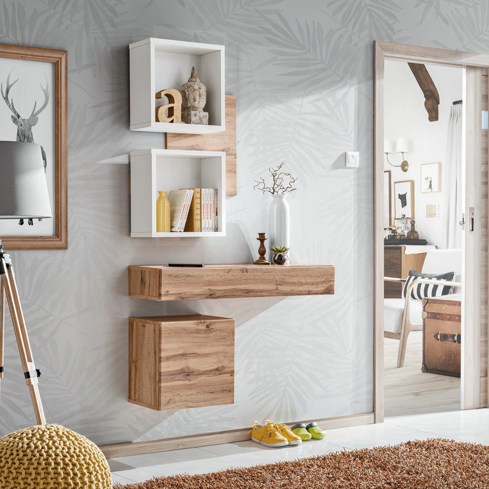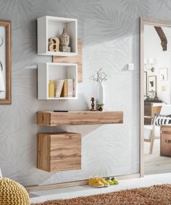 Ofemia – Set ingresso con pensili e vani bianco opaco e rovere cm 100x30x170h