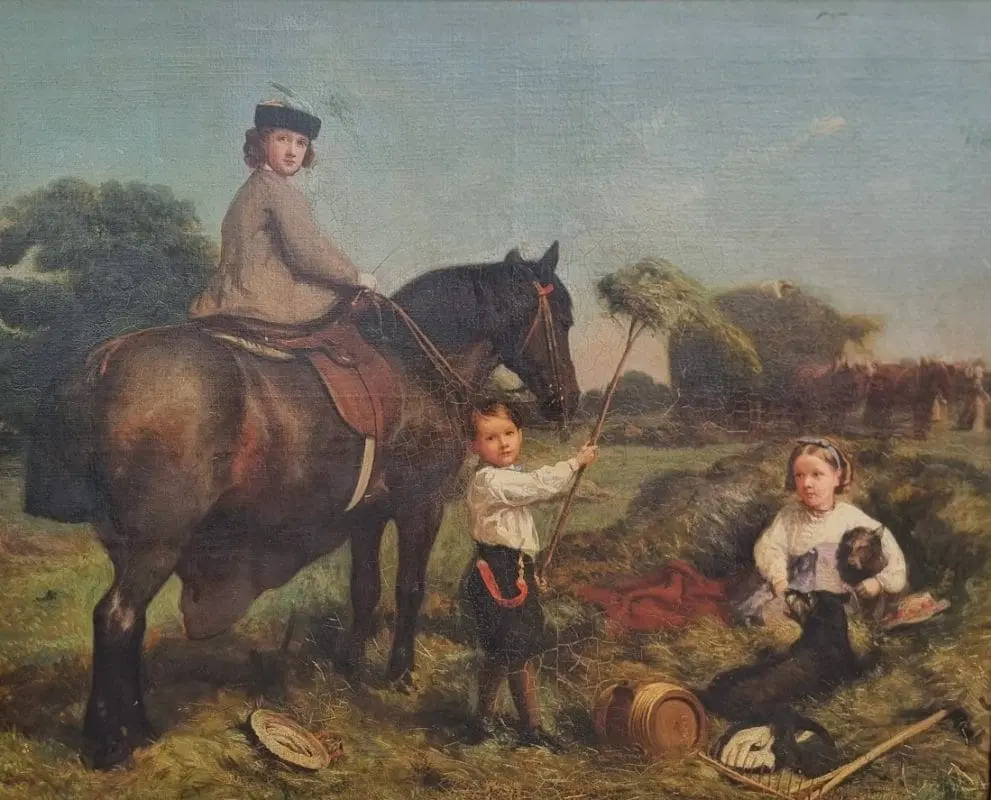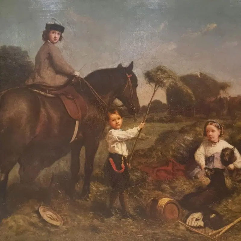 Un capolavoro pittura inglese 800: Paesaggio con dama a cavallo e fanciulli