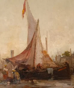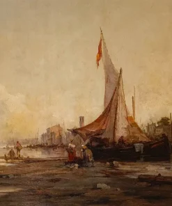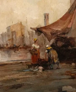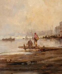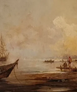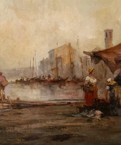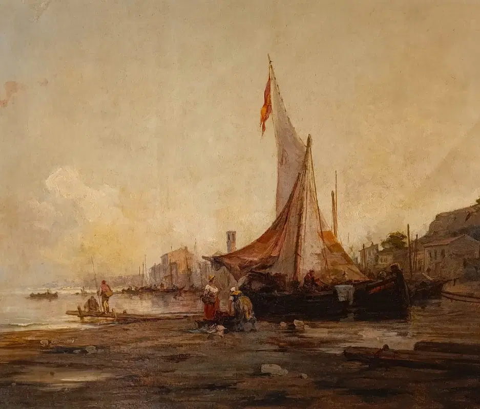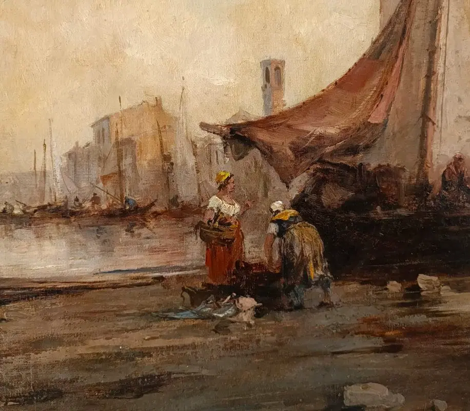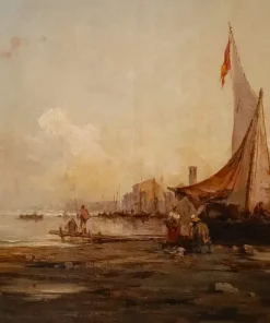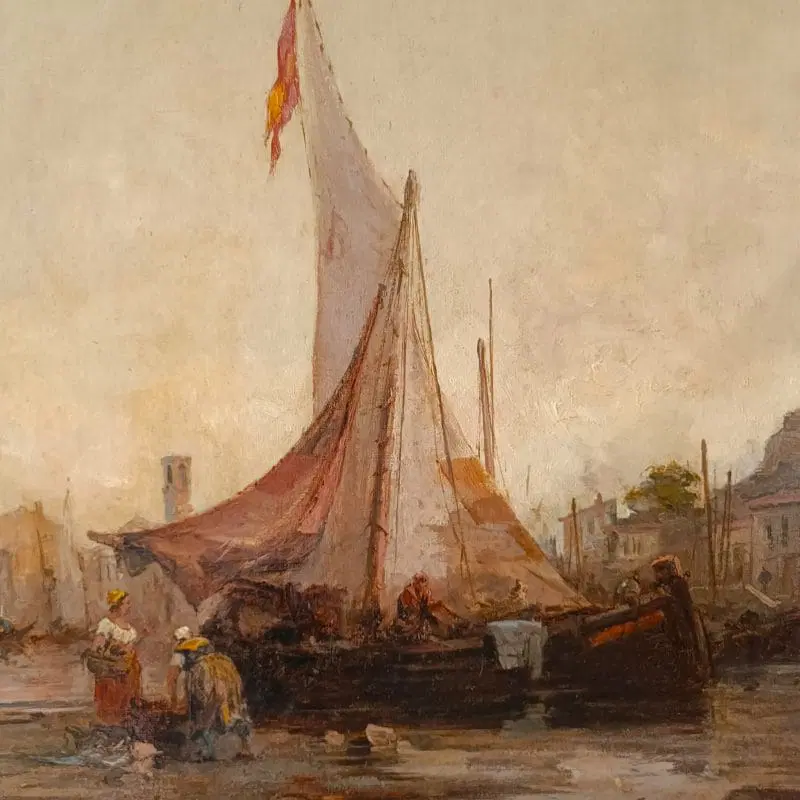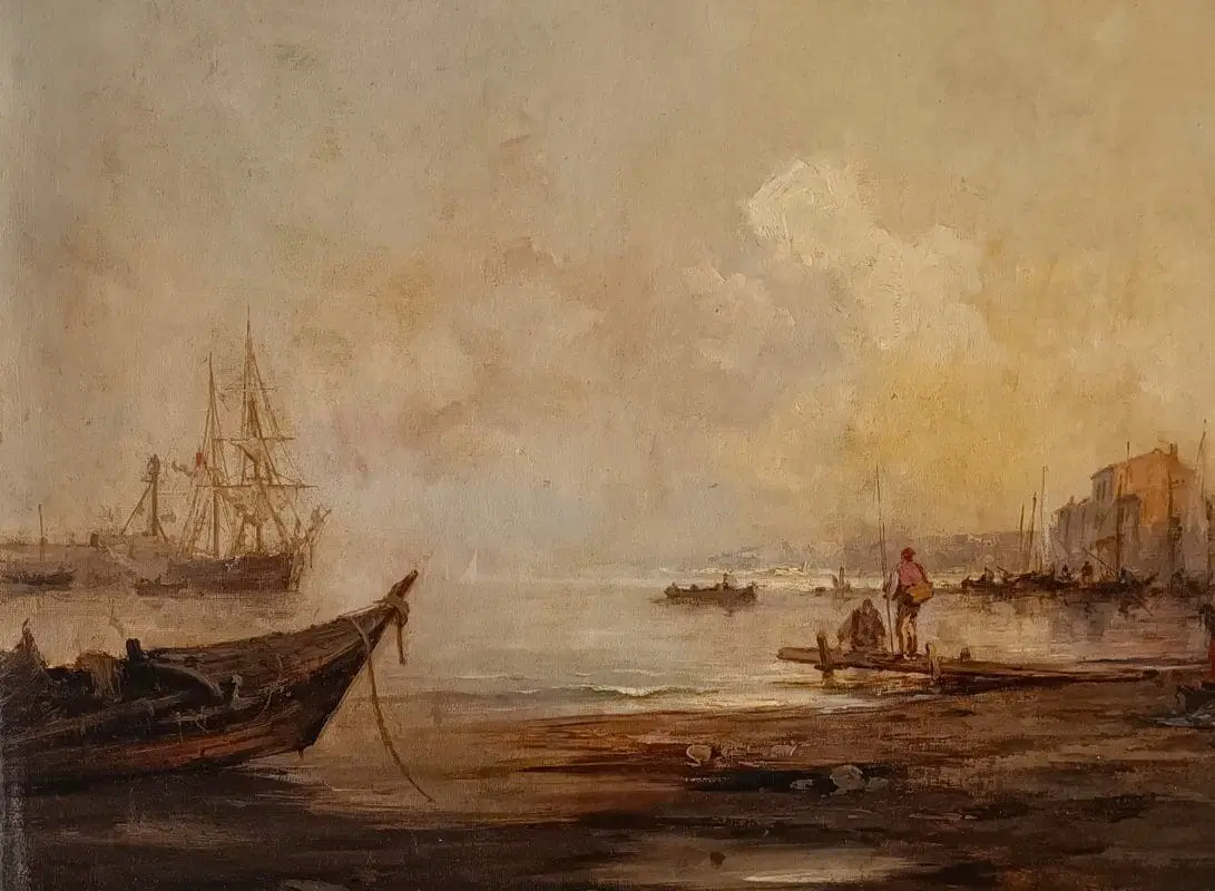 Olio su tela Marina con Laguna di Venezia datato 1877