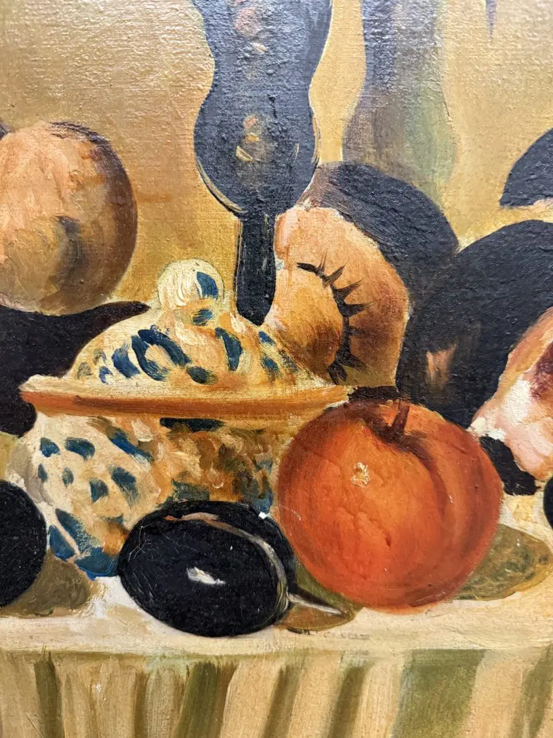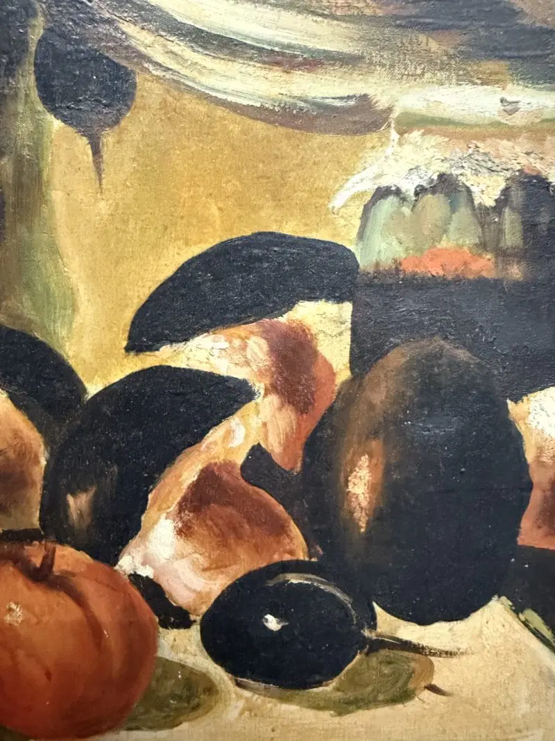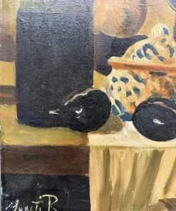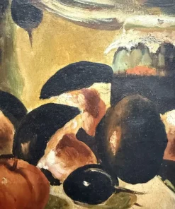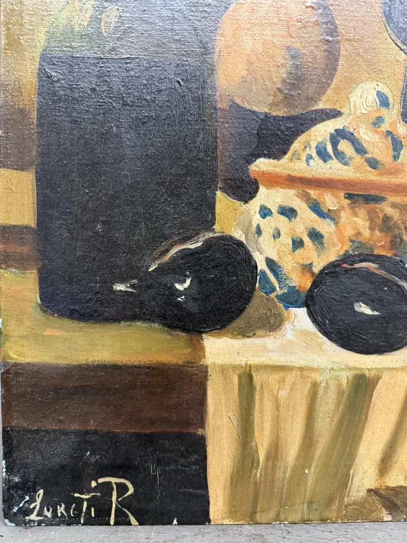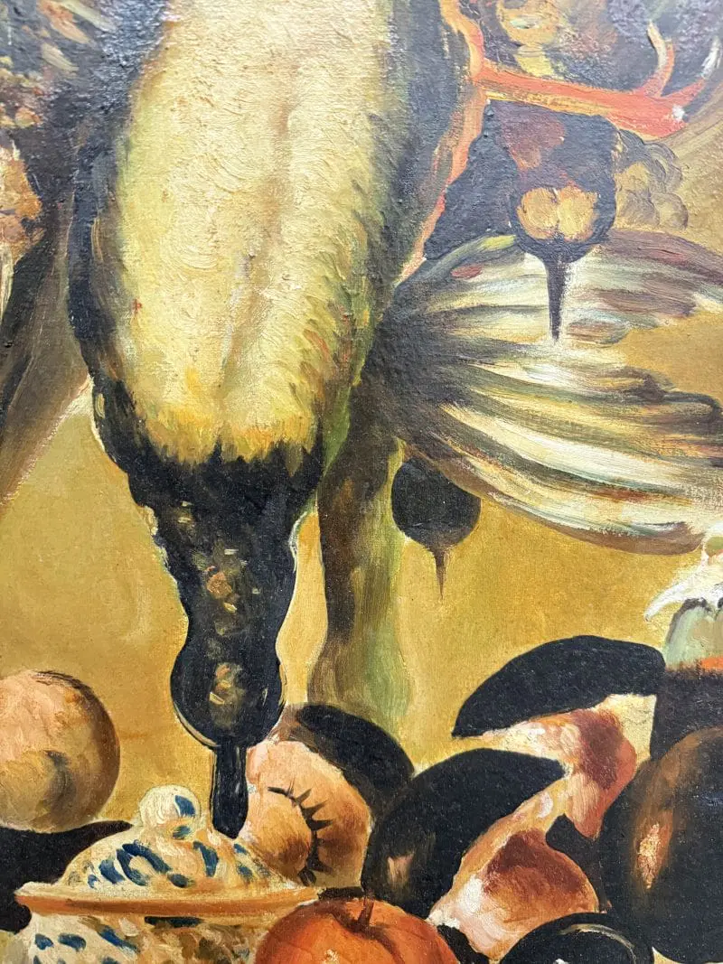 Olio su tela raffigurante natura morta e cacciagione XX sec., 70×51 cm, firmato. Scuola italiana