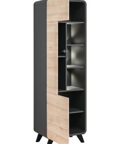 Credenza alta Olisia composta da unica anta che chiude 4 ripiani e vani a giorno con graziose luci a led. Interessante grazie alla forma arrotondata, il mobile da soggiorno Olisia è apprezzata anche per il contrasto di colori antracite della struttura e quercia dei frontali. Bella e soprattutto funzionale, pratica e spaziosa.