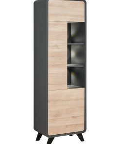 Credenza alta Olisia composta da unica anta che chiude 4 ripiani e vani a giorno con graziose luci a led. Interessante grazie alla forma arrotondata, il mobile da soggiorno Olisia è apprezzata anche per il contrasto di colori antracite della struttura e quercia dei frontali. Bella e soprattutto funzionale, pratica e spaziosa.
