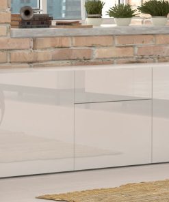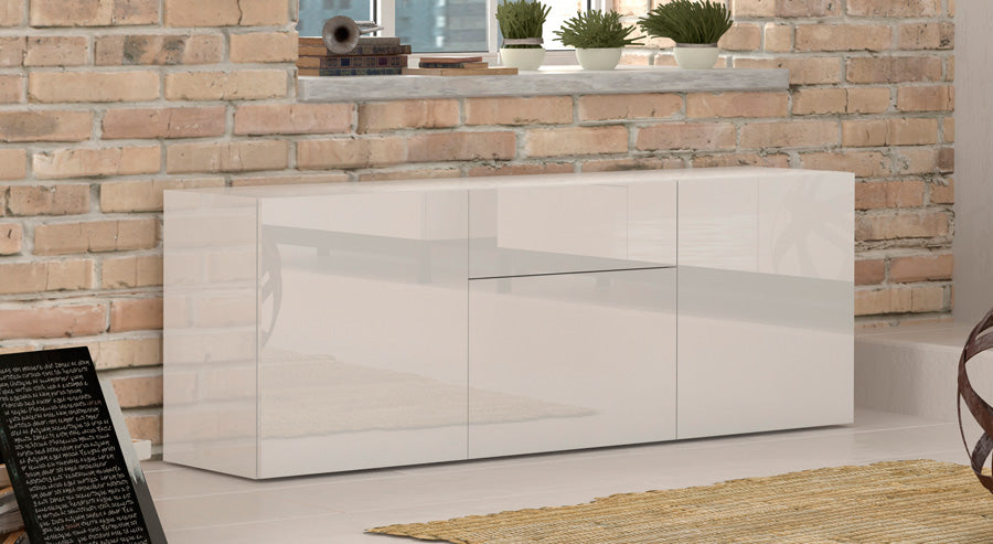 Credenza in legno, con cassetto e 3 ante, disponibile nel colore antracite o bianco lucido. Perfetto per arredare il vostro soggiorno o salotto, il mobile darà un look elegante e moderno, per un ambiente accogliente e grazioso.