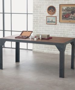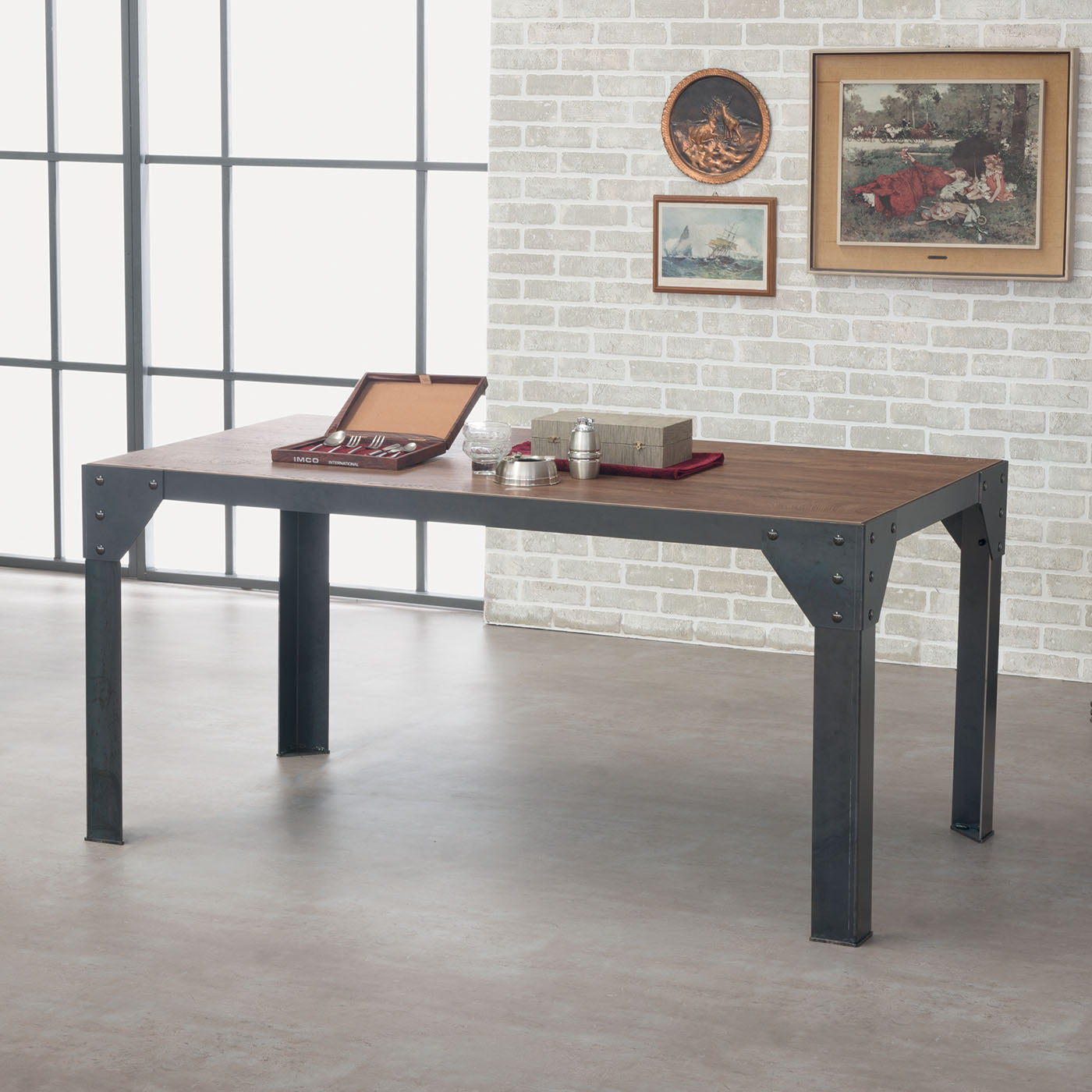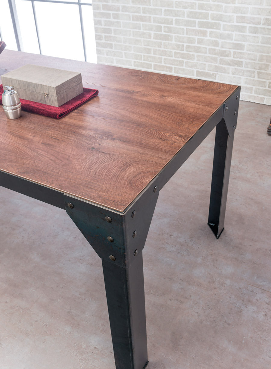 Interessante tavolo da pranzo fisso disponibile nelle misure da cm 160 o cm 180. Orneo si differenzia per una struttura particolare in metallo con bulloni a vista, accompagnato da piano in legno, un modello originale perfetto esempio di stile industriale.