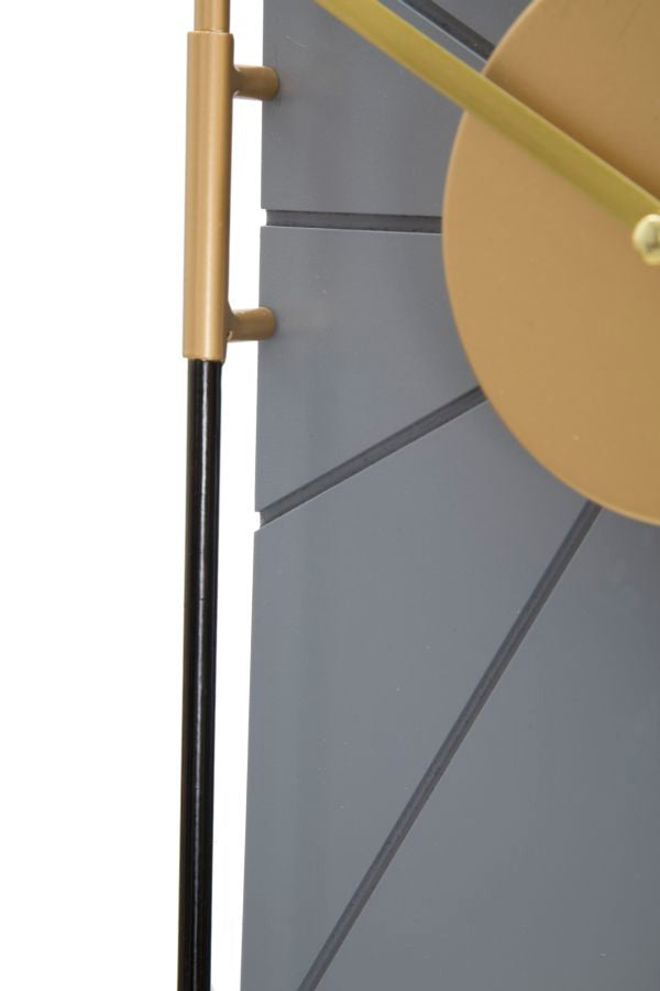 Orologio da parete prodotto in metallo e legno, definito da uno stile fortemente minimale ma curato nei dettagli. Contraddistinto da elementi oro, nero con quadrante colore grigio, il nostro orologio moderno è indicato per chi vuole distinguersi con complementi unici e sofisticati.