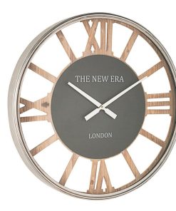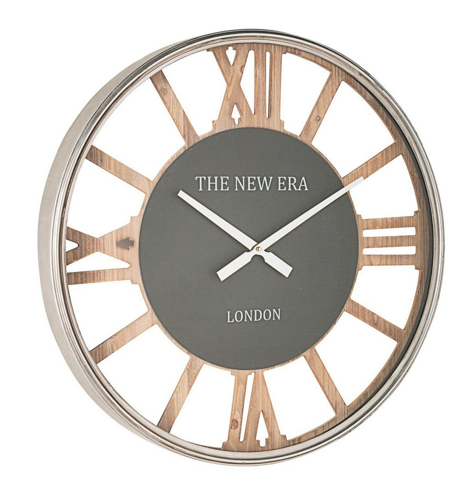 Orologio da muro tondo, con cornice in acciaio cromato. I numeri, in caratteri romani, sono realizzati in legno colore naturale. Dal design moderno, è perfetto per decorare qualsiasi parete della vostra casa.
