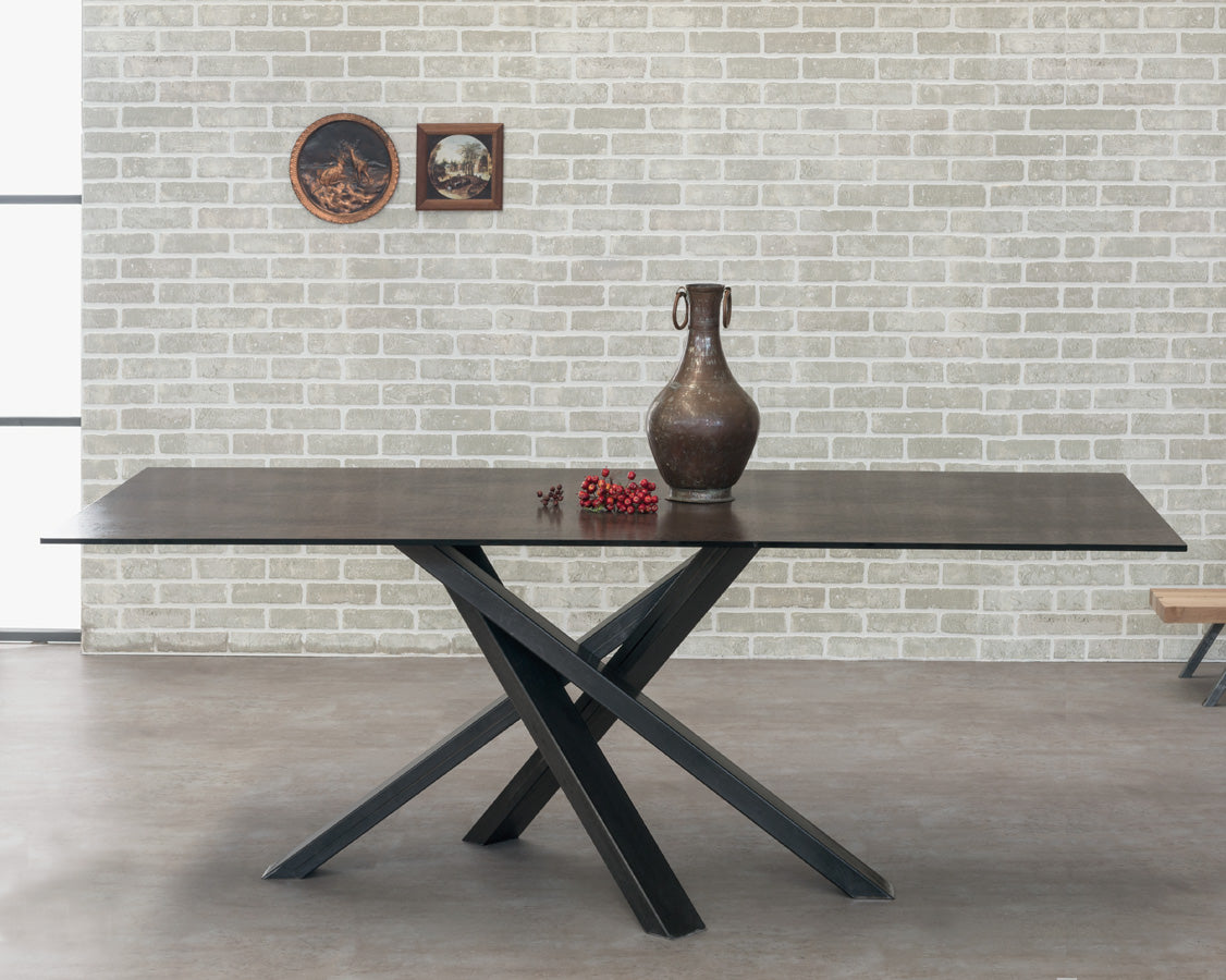 Tavolo da salotto fisso Orson composto da gambe incrociate in metallo e piano in vetro. Disponibile in misure ampie come cm 180×90 o 200×100, il nostro tavolo design sarà impattante ed elegante in qualsiasi contesto venga inserito. Realizzato con attenta lavorazione artigianale Made in Italy.