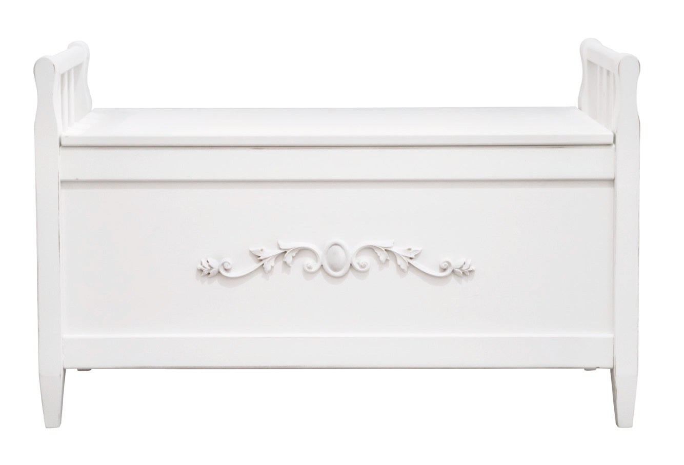 Panca in legno di colore bianco, il mobiletto giusto per arredare l’ingresso con uno stile classico e dalla raffinatezza unica. Questa panca infatti, presenta una struttura tradizionale con dettagli significativi, come la decorazione in rilievo che riprende un motivo classico, o i particolari braccioli in legno.
