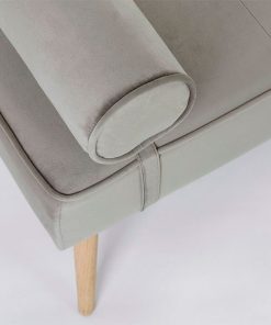 Panca da ingresso in velluto, a scelta tra il colore grigio chiaro o rosa antico, con gambe in legno di pino. In stile moderno, la panca darà risalto al vostro ambiente, con un tocco di stile e raffinatezza.