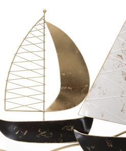 Decorazione da parete pensata per chi ama un soggetto raffigurativo come una barca a vela. Infatti, questo particolare pannello design rappresenta un regata con un insieme di vele realizzate in metallo e realizzate con ricchi dettagli lavorati. Ogni vela è elaborata in modo diverso con texture differenti e una combinazione di colori come bianco, nero e oro, per rendere questo quadro ricercato ed elegante.