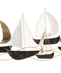Decorazione da parete pensata per chi ama un soggetto raffigurativo come una barca a vela. Infatti, questo particolare pannello design rappresenta un regata con un insieme di vele realizzate in metallo e realizzate con ricchi dettagli lavorati. Ogni vela è elaborata in modo diverso con texture differenti e una combinazione di colori come bianco, nero e oro, per rendere questo quadro ricercato ed elegante.