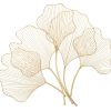 Pannello da parete in metallo 3D raffigurante fiori stilizzati composti esclusivamente da sottili linee in metallo colore oro.