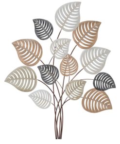 Pannello da parete moderno con foglie in metallo 3D cm 81x5x100h
